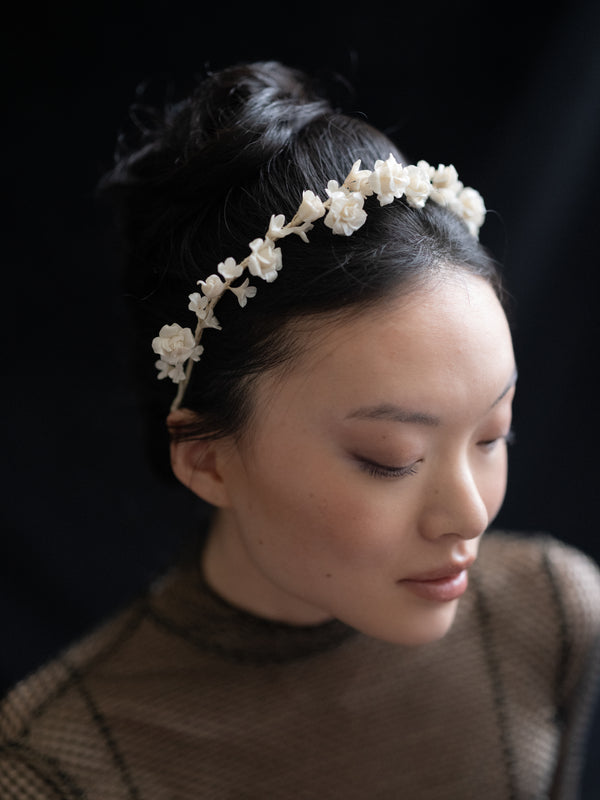Erin shapes each petal and leaf by hand, carefully painting and assembling every flower to create unique, inspired by nature accessories that bloom eternally.